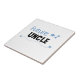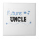 Caixas de manutenção, azulejos, ornamentos, notebooks, canecas, ímanes, cartões, botões, capuzes, chaveiros e outros futuros itens de presentes e roupa de tio com texto azul e preto e design de estrela.