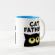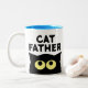 Pai Gato presente de caneca de café engraçada para o dono do animal. Uma xícara branca e bonita, com desenho animado de gatinho e citação humorística. Ideia divertida de presente para amante de os animais, dono de gato, pessoa de gato, pai de gato, amante de estimação etc. Cor azul ou personalizada no dentro. Silhueta de gato engraçada com olhos grandes amarelos.