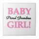 Vovó orgulhosa de uma Menina guardando caixas, azulejos, ornamentos, cadernos, canecas, cartões, adesivos, sacos de tote, ímãs, chaveiros e outros itens de presente e roupa de vovó orgulhosos com texto rosa e preto.