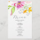 Esta folha de designs do menu de casamento apresenta flores únicas de cor d'água em tons de rosa e laranja. Use os campos de modelo para DIY (Esclarecer os detalhes personalizados). O elegante design é uma escolha encantadora para casamentos rústicos e jardineiros. Para ver mais ideias de cardápios como esta visite www.zazzle.com/dotellabelle Arte a aquarela exclusiva e design por Victoria Grigaliunas do Do Tell A Belle.