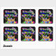 Adesivo quadrado com imagem de placas de tinta vermelha, laranja, amarela, verde e azul, tênis de alto nível em cores neonatais, fitas cassetes, óculos de sol coloridos e o texto "Preso nos anos 80" em letras neonatais. Ver vinheta de vinilo cortada por medida, confetti, bolsa de favor, caixa de favor, etiqueta de favor, sacos de presente, etiqueta e papel de embalagem. Veja toda a coleção Tubular 80s Sticker nos CONVITES | Seção Stickers & Labels