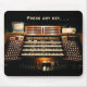 Este mousepad do órgão de tubulação é um presente ideal para um organista que mostra uma disposição desconcertante de paradas, pistões e botões, e um grande console quatro-manual do órgão. Debaixo de são as palavras pressionam toda a chave