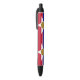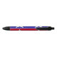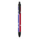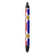 Caneta com pavilhão da cidade de Dallas, Texas; bandeira com bandas horizontais vermelhas e azuis com selo da dentro de uma estrela branca no centro