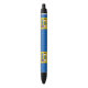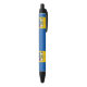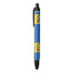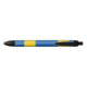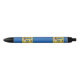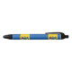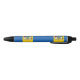Caneta com pavilhão da cidade de Filadélfia, Pensilvânia; bandeira com três bandas verticais de azul e amarelo com o casaco de braços da cidade no centro