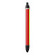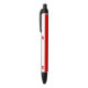 Caneta com pavilhão da cidade de Papais noeis Barbara, Califórnia; bandeira com tricolor vertical de branco, vermelho e amarelo, com ilustração de um forte vermelho no canto superior esquerdo