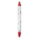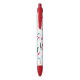 Esta caneta é ilustrada com flores de três pétalas de estilo sintético, em verde e vermelho, lembrando a atmosfera natalícia.