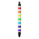 Listras coloridas alternadas e listras brancas. As cores são vermelho, laranja, amarelo, verde, azul, índigo e violeta.