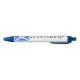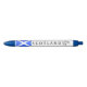 Uma caneta para amantes de Scotland e todo o Scottish das coisas, com uma ilustração de uma flor do cardo e um gráfico da bandeira azul e branca de Scotland, igualmente conhecida como o Saltire. Entre é a palavra Scotland na rotulação preta. O cardo é, naturalmente, a flor nacional de Scotland. Você pode mudar a cor da guarnição azul com o botão da personalização.