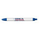 Caneta de Nova Iorque. Um tributo à estadismo de Nova Iorque em 1788, com tipografia patriótica e uma estrela azul marcante com estrelas e faixas preenchendo as iniciais "EUA".