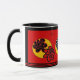 Vermelho contemporâneo, amarelo, design brilhante amigável da caneca de café da flor do preto aviva seu espaço. A caneca de café amigável da flor faz cada special da ocasião. Design original por Anne Bell.