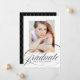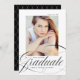 Anúncio de graduação elegante com a foto do mais velho do formando e uma fonte preta de caligrafia moderna. Personalize os anúncios de graduação de fotos adicionando o nome do formando, o nome da escola e o ano de graduação. A parte de trás dos anúncios de graduação apresenta um padrão na moda preto e branco de girino.