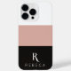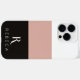 Belo e elegante design de capa de telefone personalizado mínimo com um bloco colorido de três cores (rosa dourado, preto, branco) em tons de ouro pastel rosa e nome personalizado e monograma em fontes tipográficas sofisticadas. Personalize a fonte e a cor do texto com a ferramenta do editor. Para todos os modelos de iPhone da Apple e alguns smartphones da Samsung Galaxy. Perfeito para as mulheres na moda de moda feminina.