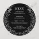 Mergulhe na elegância clássica com nosso cartão de primavera boêmico rústico/verão preto e branco. Adorado com uma coroa de delicadas flores de flor silvestre, ele adiciona o toque perfeito para elevar sua experiência de jantar.
