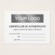 Certificado de autenticidade elegante e minimalista em preto e branco, ao qual você pode adicionar seu nome ou nome comercial e seu logotipo também.