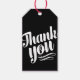 Vintage e elegante etiqueta de presente preto e branco para favores de casamento, chá de panela, festa de noivado, chá de fraldas ou festa de aniversário. Decorado com espiral e obrigado de anotação manual para tornar seu dia especial único e memorável. Você pode personalizar o texto no verso para corresponder à sua ocasião. Escreva o monograma da noiva e do noivo ou outra coisa igualmente especial.
