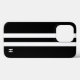 O design apresenta um fundo preto para faixas de corrida brancas indo de cima para baixo. Seu monograma aparece de branco à direita da pista de corrida no fundo. Copyright Kathy Henis