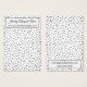 //Observe que os marcadores para suas perfurações foram renderizados aqui em vermelho para permitir que aparecessem melhor sobre a imagem de fundo. Essa camada pode ser removida ou a cor muda para qualquer um que você preferir. // Esta simples placa divertida possui espaço para modelo para adicionar os detalhes de contato da sua empresa tanto à frente quanto à parte traseira. Eu usei uma fonte bonito de script para seu designer ou nome comercial, e uma fonte sans-serif limpa para todos os outros detalhes. O plano de fundo da placa estava coberto por um gráfico que mostrava o confete preto, permitindo que a cor branca de fundo editável fosse exibida. Um retângulo delimitado por preto sobrepõe este gráfico, definindo seus elementos de texto de forma elegante. Por favor, não hesite em contactar se precisar de ajuda personalizada.