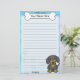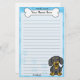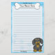 Dachshund de Kawaii do divertimento com uma raça do cão dos desenhos animados no canto direito mais baixo. A parcela superior pode imediatamente ser personalizada com seu nome dentro do osso grande do cachorrinho. O fundo da beira e do papel é azul. Nós temos este cão na versão revestida vermelha demasiado!