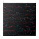 O abstrato, preto e azul design por HomeWare neste pequeno Azulejo cerâmico é realçado por linhas vermelhas finas e onduladas que passam horizontalmente sobre ele. As linhas desvanecem-se no fundo maioritariamente negro, que tem pequenas formas azuis do céu espalhadas por toda a parte. O padrão tem um aspecto moderno, quase espaçoso.