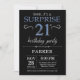 Surpreenda o convite do aniversário de 21 anos com fundo preto e azul do brilho. Quadro. Aniversário adulto. Os homens ou as mulheres Bday convidam. Alguma idade. Para uma personalização mais adicional, clique por favor "personalizam-no" botão e usam-nos nossa ferramenta de design para alterar este modelo.