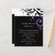 Pequena placa RSVP para combinar com nosso convite de casamento de espiral reversa preto e roxo branco, com fundo de folha de rolagem gráfica ousada. Personalize online com seus detalhes de casamento. Este item está disponível como uma coleção completa de casamento e artigos de papelaria, incluindo convites, cartões RSVP, Salvar Datas, Magnets, Adesivos, Cartões de Local de Mesa, Planejamento de Casamentos e Binders de Álbum de Fotografias e Mais!