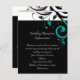 Black White Teal Floral Swirl Wedding InvitationCriado por Angela CuteComfy Designs