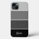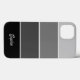 Esta capa de telefone de tendências apresenta quatro faixas em diferentes gradientes ombre de preto, carvão e cinzas, e seu nome na tipografia de scripts para um olhar moderno.
