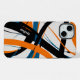 Este cobrir de celular moderno na moda apresenta um design dinâmico com interseção, linhas fluentes em tons negros de laranja, preto e lacre contra um fundo branco limpo. As linhas torcem e se sobrepõem, criando um sentido de movimento e energia, reminiscente da arte abstrato moderna. Seu nome é impresso em branco, posicionado verticalmente para complementar o fluxo energético do design. Substitua o nome ou exclua-o. O estilo de arte é contemporâneo e geométrico, enfatizando cores ousadas e formas fluidas para criar uma aparência visualmente envolvente e surpreendente, perfeita para quem aprecia uma estética moderna e artística.