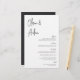 Projetado para combinar com nossos convites de casamento de Script Manuscrito Moderno. Uma bela design baseada em tipografia, com um toque minimalista, com moderno roteiro escrito à mão cinza preto e letra serif clássica. Personalize com seus itens de menu com oito campos de texto personalizados.