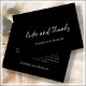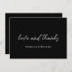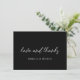 Cartões de agradecimentos de casamento personalizável. Apresentando o Amor e os Obrigados em um script em branco em um fundo preto. Com uma mensagem personalizável no verso.