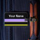 Seja notado no terminal de bagagem com esta maldita etiqueta de bagagem riscada. Este preto com etiqueta listrada roxa foi desenhado como um desenho de tinta digital de caneta por Susan Golis.