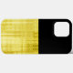 Esse Abstrato, gráfico de dois tons, é projetado a preto, para a metade superior, e para a metade inferior, é padronizado com quadrados minúsculos e em película, em ouro, branco, bronze e preto.