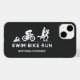 Design de gráfico em negrito alinhando os três eventos de triatlo - NATAÇÃO, BIKE, EXECUTE com os cabeçalhos abaixo.