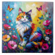 This tile has a cute whimsical colorful pink, blue, orange, purple and white folk art cats sitting in flowers and surrounded by butterflies done in an impasto style.