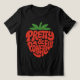 A clean flat 2D strawberry illustration paired with the phrase “Pretty & Powerful.” The heart-shaped berry features a bold red fill, darker teardrop seeds, and simple flat green leaves in a modern vector style. Smooth, symmetrical, and ultra HD, this minimalist design blends sweetness with strength, making it perfect for fresh, aesthetic prints. Transparent background included.