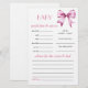 Predições de Bebê e Cartão de Jogo de Fita com Cor-de-Água Rosa de Arco Rosa. Itens correspondentes disponíveis.