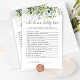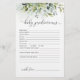 Previsões do chá de fraldas Eucalyptus para o cartão de bebê. Os jogos correspondentes estão disponíveis.