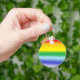 Mostre o seu orgulho com este chaveiro com padrão arco-íris.