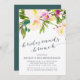 O convite para lanches florais elegantes e modernos apresenta um buquê de flores de aquarela hereais pastel em creme de sombra e cor-de-rosa pincelada, com sotaques botânicos verdes e exuberantes. Personalize com os detalhes do brunch da sua dama de honra na elegante tipografia azul da meia-noite acentuada com caligrafia de estilo manuscrito. Cartões invertidos a verde-jasper sólido.