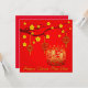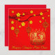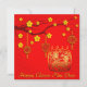 Ilustração estilizada com flores amarelas de "Cherry", lanternas chinesas, recorte de papel chinês ouro de um Tiger + Feliz Ano Novo Chinês em Inglês. Design na placa plana quadrada com ano personalizado de 2022 em fundo amarelo + vermelho atrás (para personalizar se quiser).
