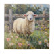 Uma pintura deliciosa de uma ovelha primavera cercada por flores silvestres coloridas num campo sereno. As texturas suaves e matizes vibrantes trazem um charme pacífico e pastoral para esta paisagem rústica.
