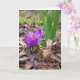 Roxo primavera crocus em folhas de carvalho para simpatia geral