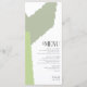 Bloqueio de cor abstrato em uma paleta colorida de cor rosa cor rosa e primavera verde fornece um fundo impressionante para as peças desta suíte de casamento contemporânea. O cartão 'Menu' do casamento mostrado aqui é uma adição chamativa à sua decoração de mesa. Adicione as seleções de menu, as iniciais e a data do casamento usando a modelo fornecida. Procure ID740 para ver outras opções de cores e produtos adicionais com este design.