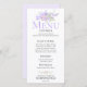 Bonito menu Casamento para seus convidados - Um buquê de bonito flores lilás e rosa combinadas com texto simples cria um menu de casamento elegante do jardim.