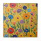 Flores coloridas de primavera em azulejo cerâmico ilustrado com fundo amarelo