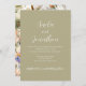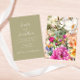 Ponha o tom para uma celebração romântica de primavera com este convite de casamento floral verde sábio. A frente apresenta uma tipografia moderna em um fundo verde macio, enquanto a parte de trás mostra um buquê vibrante de flores florescentes de jardim. Personalize com seus detalhes de casamento para criar uma bela primeira impressão para seus convidados.