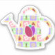 Pastel, quadrados cor-de-rosa, amarelo, roxo e verde, são enfeitados com preguiças, flores de madeira, margaridas, e abelhas melíferas, e depois bordados por uma costura branca apertada para criar um padrão divertido e doce como um patch de primavera. Um regador pode ser uma silhueta decorada com uma tulipa tricolor cria uma máscara fofa para o padrão.
