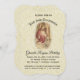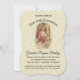 Elegante Eru Lace Primeira Sagrada Comunhão Convites com a bela imagem tradicional de Jesus, oferecendo a uma jovem o anfitrião, sua Primeira Comunhão Santa. O traseiro é um design de renda. Todos os textos, imagens e fontes podem ser personalizados.