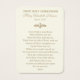 Este exquisito cartão sagrado apresenta o Menino Jesus num momento de profunda reverência Eucarística, representado amorosamente no estilo de uma imagem sagrada tradicional. O Menino Jesus, radiante de inocência e paz divina, segura uma Hóstia brilhante com o monograma sagrado "IHS" e um cálice dourado ornamentado, simbolizando a Sua Presença Real no Santíssimo Sacramento. A Sua face suave é coroada por um halo luminoso, enquanto um brilho sagrado suave e uma moldura ricamente detalhada de rosas e lírios enquadram a cena com reverência e pureza. Ideal para a Primeira Comunhão, Adoração Eucarística ou exposição devocional, este cartão é um convite terno para se aproximar do Coração de Jesus na Sagrada Eucaristia.