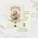Personalize a nossa bela vintagem católica tradicional Primeira Carta de Memória da Santa Comunhão com a Bênção da Virgem Maria, rosas cor-de-rosa e um cálice e anfitrião abaixo. Uma bela oração católica está nas costas. Todo texto e fontes podem ser modificados.